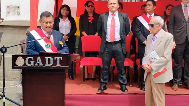El homenaje tuvo lugar durante el acto oficial desarrollado en el frontis de la Gobernación, en el que participaron autoridades, instituciones y representantes de la sociedad civil.
