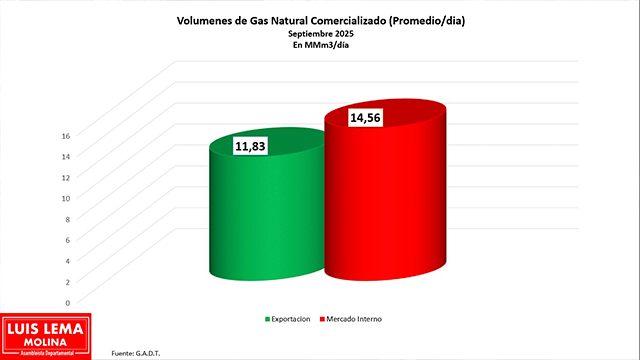 Según datos recientes de YPFB correspondientes a septiembre, el país produce 26,3 millones de metros cúbicos por día, de los cuales 14,56 millones se destinan al mercado interno y 11,83 millones a la exportación, mostrando una diferencia cercana al 20%.