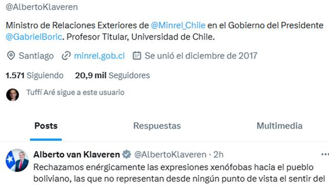En su mensaje, Van Klaveren recalcó que “el racismo y la xenofobia son inaceptables”, marcando distancia de los dichos de la parlamentaria. La polémica se desató en el marco de un debate electoral del Partido Demócrata Cristiano (PDC) sobre la legalización de autos indocumentados, donde Cordero lanzó la frase contra los bolivianos.