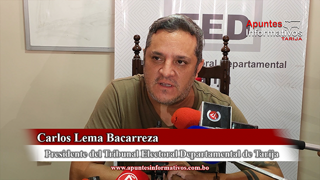 El presidente del Tribunal Electoral Departamental (TED) de Tarija, Carlos Lema Bacarreza, informó que la sala plena del TED podría emitir la próxima semana, específicamente el martes, una resolución sobre la habilitación o inhabilitación del candidato a la Gobernación, Mario Cossio Cortez.