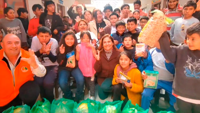 Además, cada niño recibió una bolsa solidaria con 15 productos alimenticios, lo que permitirá mejorar la calidad de su alimentación en estos tiempos difíciles.