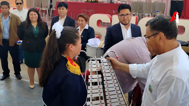 El gobernador de Tarija, Oscar Montes Barzón, entregó instrumentos musicales a la Banda de la Unidad Educativa Julio Sucre del municipio de San Lorenzo, en el marco de la celebración del 58º aniversario de la institución.