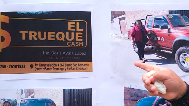 Barbarita López, propietaria de una camioneta Toyota Tacoma, denunció públicamente que su vehículo, entregado en condición de empeño por una deuda de 12.000 bolivianos, fue vendido sin su consentimiento por la casa de préstamos conocida como “Trueque”.